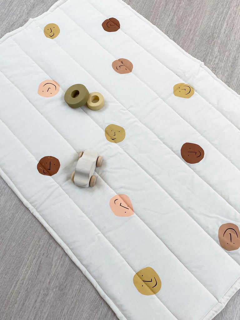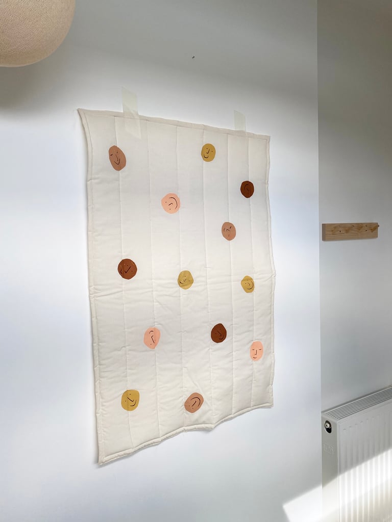 Cet édredon est multifonctions : d'abord une couverture ou un matelas à langer, quelques mois plus tard un tapis de sol, un couvre lit, puis quand l'enfant grandit une décoration murale...